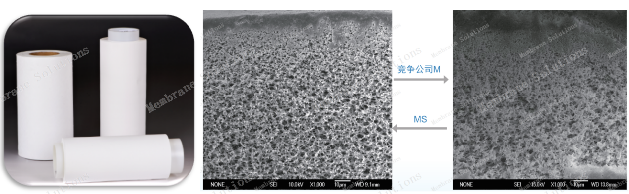 | 1、獨(dú)立自主的膜生產(chǎn)工藝 邁博瑞的PES膜采用獨(dú)特的工藝生產(chǎn)而成,具有超不對(duì)稱的膜孔結(jié)構(gòu),而且同樣的孔徑之下,相比較其他膜具備更高的水通量,更低蛋白吸附特性。 |