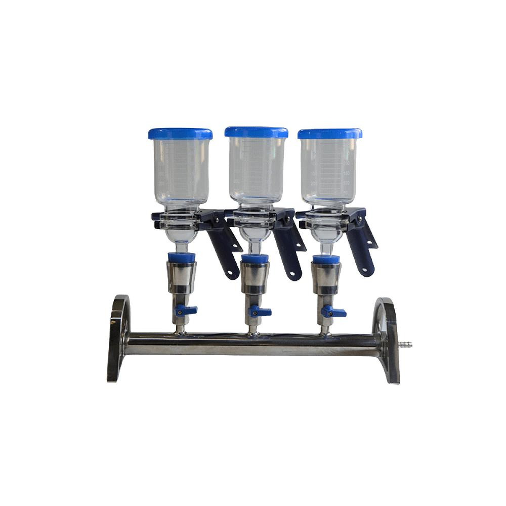 MS 多聯(lián)過濾器是專門為同時間測定多個樣品設(shè)計的。多聯(lián)過濾系統(tǒng)可同時進行多(單、三、六)個樣品過濾,只需一個真空氣源就可以完成全部操作,節(jié)省大量的時間,方便快捷。多聯(lián)支架優(yōu)先已做拋光處理的316L材質(zhì)不銹鋼,能耐大多數(shù)腐蝕性液體,與玻璃或不銹鋼換膜過濾器配套使用。提高工作效率和試驗條件的一致性,從而達到實驗結(jié)果的準確度。并且該過濾系統(tǒng)可以在高溫操作(180℃),尤其適用于熱過濾條件的試驗。